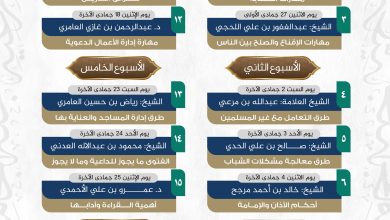 الأسبوع الأول 1. معالم أصول أهل السنة والجماعة – المدرس: الشيخ العلامة عبدالله بن مرعي العدني – الزمان: يوم السبت…