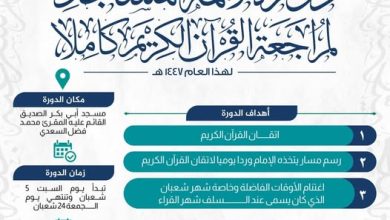 تُعلن إدارة خدمة المجتمع بالجامعة الإسلامية العالمية، بالتعاون مع إدارة القرآن بدار الحديث بالفيوش، عن إقامة دورة مكثفة لمراجعة القرآن…